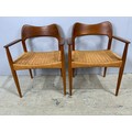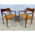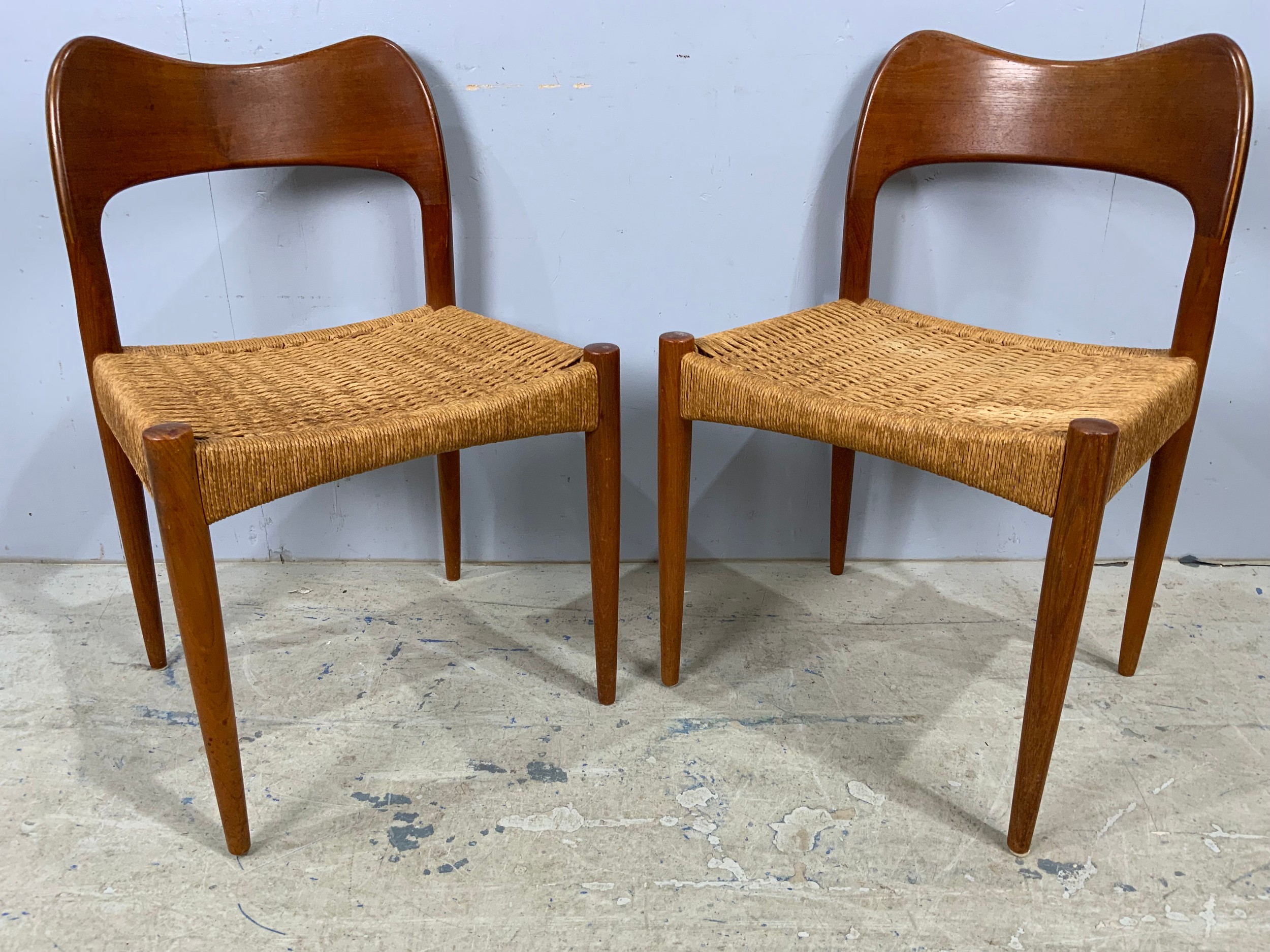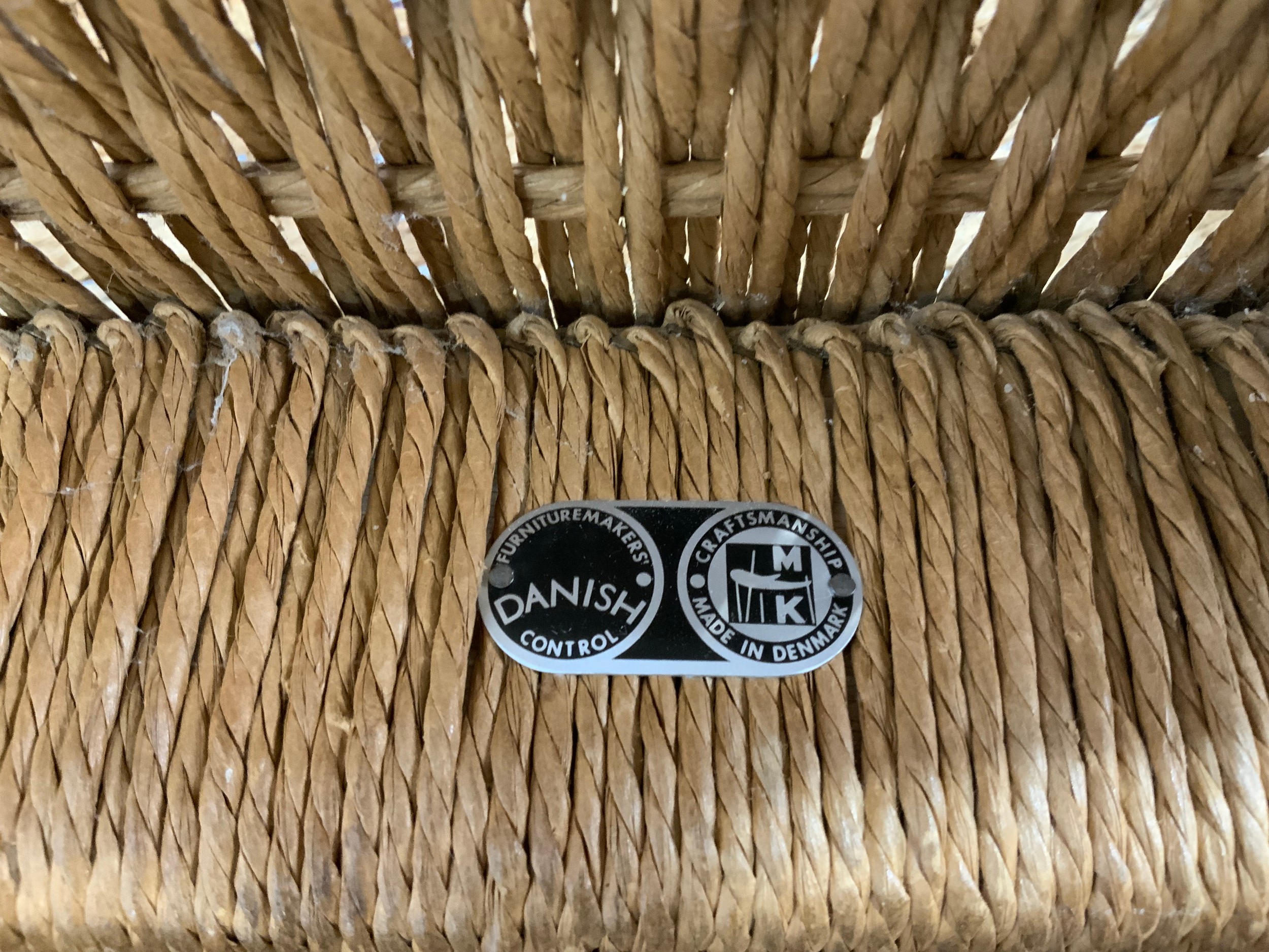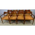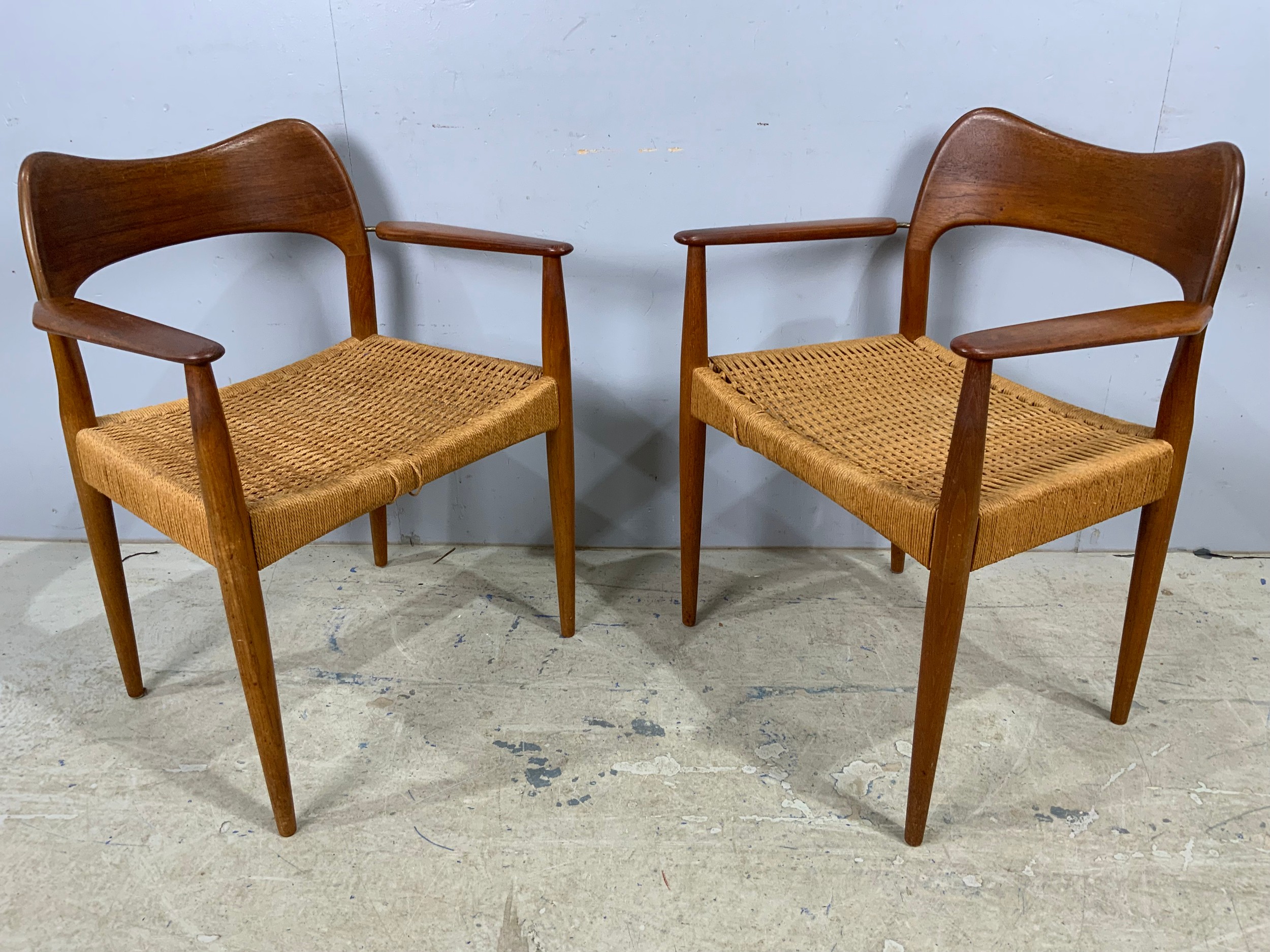 SET OF 8 (6 PLUS 2 CARVERS) DANISH 1960’S TEAK DINING CHAIRS WITH PAPER CORD SEATS